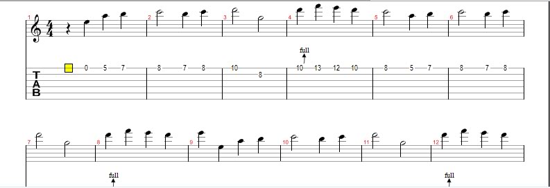 Đầu tiên, bạn phải để ý sáu dòng kẻ tương ứng với sáu dây đàn hay loa, trong đó có hai dây cần phải lưu ý nhất là, dây ở vị trí trên cao nhất gọi là dây số một tức là dây Mí, và dây ở vị trí dưới cùng là dây số 6 hay còn gọi là dây Mì.