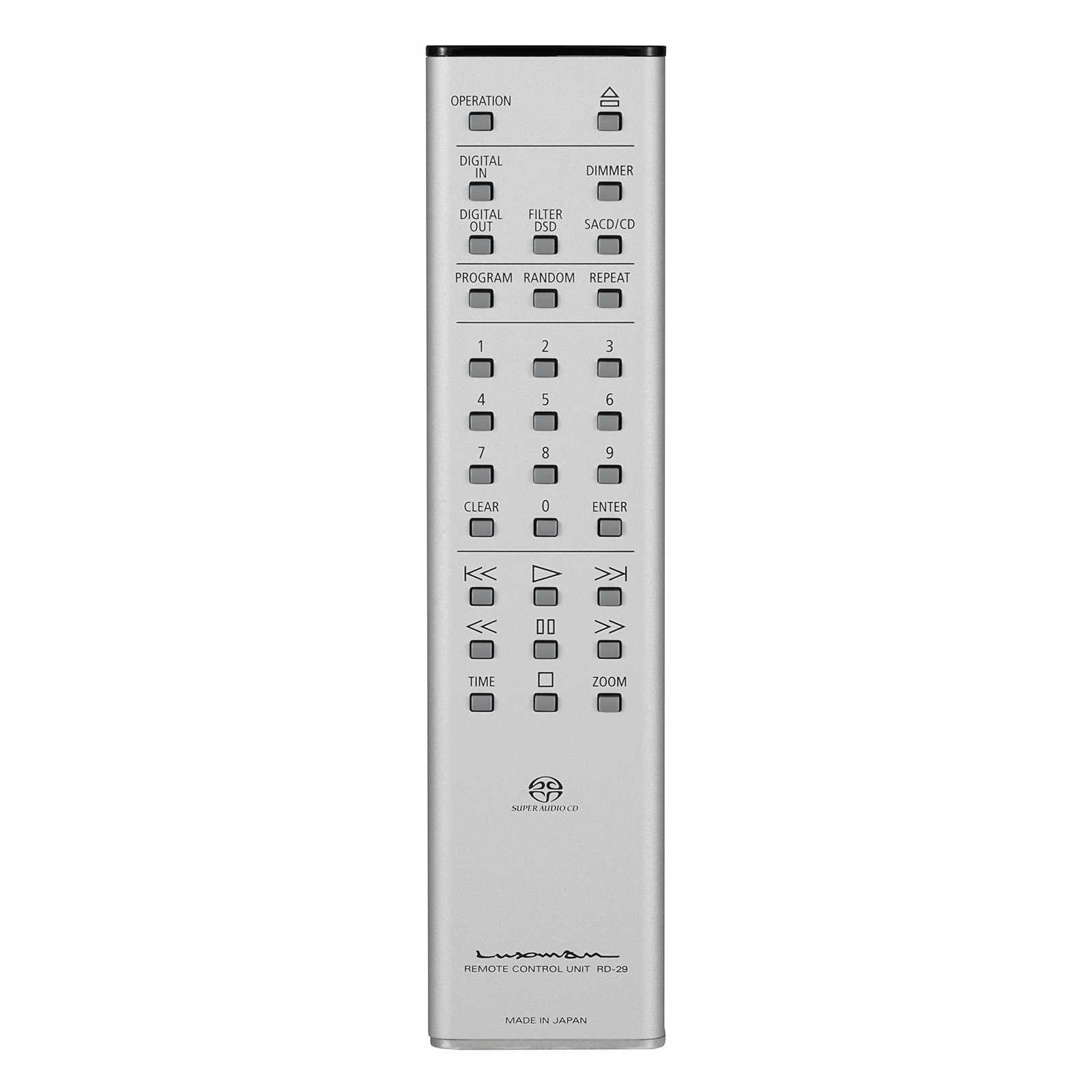 Đầu cd Luxman D-07X đi kèm một chiếc điều khiển từ xa tiện lợi với đầy đủ các nút chức năng giúp bạn có thể thoải mái điều chỉnh theo ý muốn mà không cần rời khỏi vị trí hay thay đổi tư thế thư giãn.
