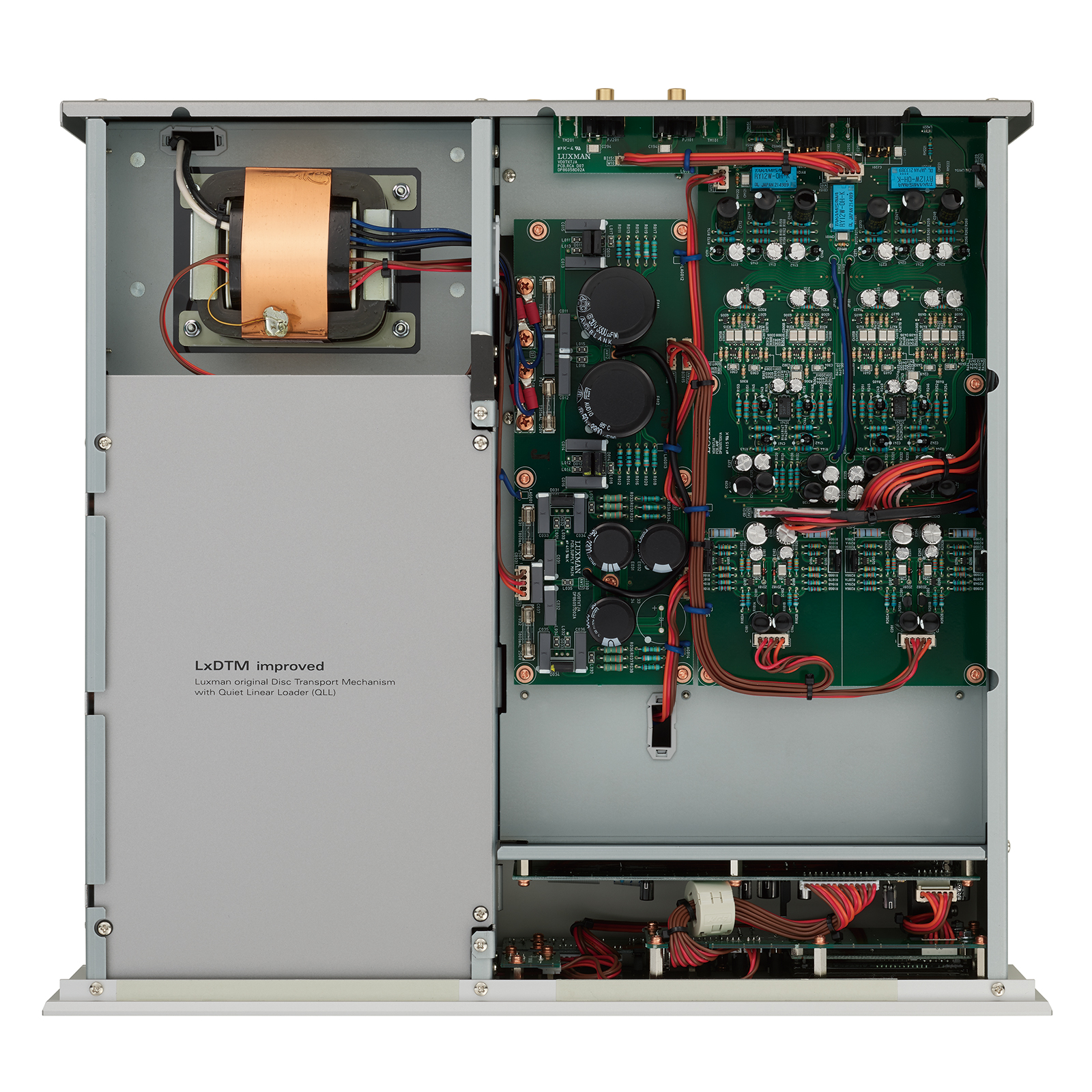 Đầu cd Luxman D-07X sử dụng bố cục cơ học bên trái không đối xứng giúp đạt được đường đi ngắn nhất và lý tưởng cho các tín hiệu khác nhau, cân bằng trọng lượng và không gian cho các mạch chất lượng cao. Phần ổ đĩa, hỗ trợ phát lại CD và SACD, dựa trên cơ chế LxDTM với cấu trúc hộp mạnh mẽ bao phủ toàn bộ cơ chế với khung bên và đĩa trên cùng và cơ chế ổ lưu trữ đường truyền. Luxman D-07X được trang bị LxDTM-i là cơ chế truyền tải đĩa gốc Luxman được cải tiến, giúp đạt được khả năng đọc tín hiệu ổn định với độ cứng cao giúp sản phẩm này đạt được hiệu suất đọc tín hiệu ổn định và chính xác Phần khay đĩa được làm bằng nhôm đúc với khả năng loại bỏ rung động và cộng hưởng không cần thiết cho phép vận hành tải chính xác và trơn tru.