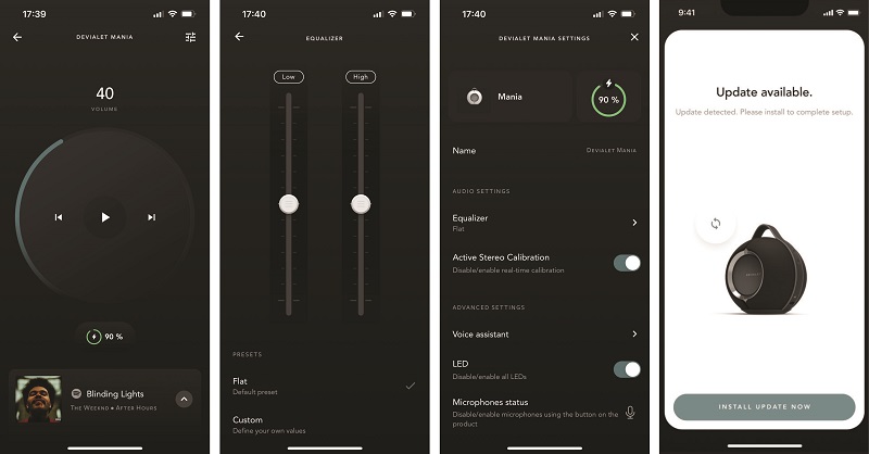 Devialet Mania được sử dụng cùng hệ thống ứng dụng với các dòng loa Phantom và Devialet Dione: ứng dụng Devialet.