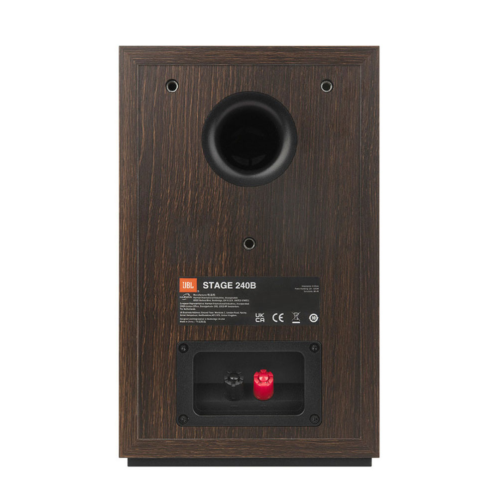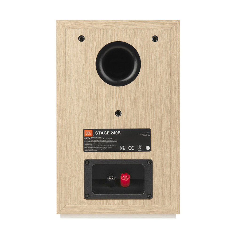 JBL Stage 240B là 1 cặp loa bookshelf siêu nhỏ gọn có kích thước 3 chiều (H x W x D) lần lượt là 272 x 175 x 217 mm cùng trọng lượng 4,6 kg có thể dễ dàng vận chuyển, lắp đặt ở bất cứ đâu như trên bàn, tủ, kệ sách hoặc sử dụng kết hợp thêm với chân loa. Từng được nét trên loa được trau chuốt rất tỉ mỉ mang đến vẻ ngoài hoàn hảo thu hút mọi ánh nhìn. Thùng loa được làm thủ công với chất liệu cao cấp mang đến sự chắc chắn, bền bỉ, mặt trước là tấm lưới ê căng bằng vải giúp tránh bụi bẩn từ các tác nhân vật lý từ môi trường bên ngoài, ngay dưới là logo JBL tạo điểm nhấn cho toàn bộ mặt trước của loa. Mặt phía sau là lỗ thoát hơi cũng như hệ thống cọc kết nối được bố trí đơn giản