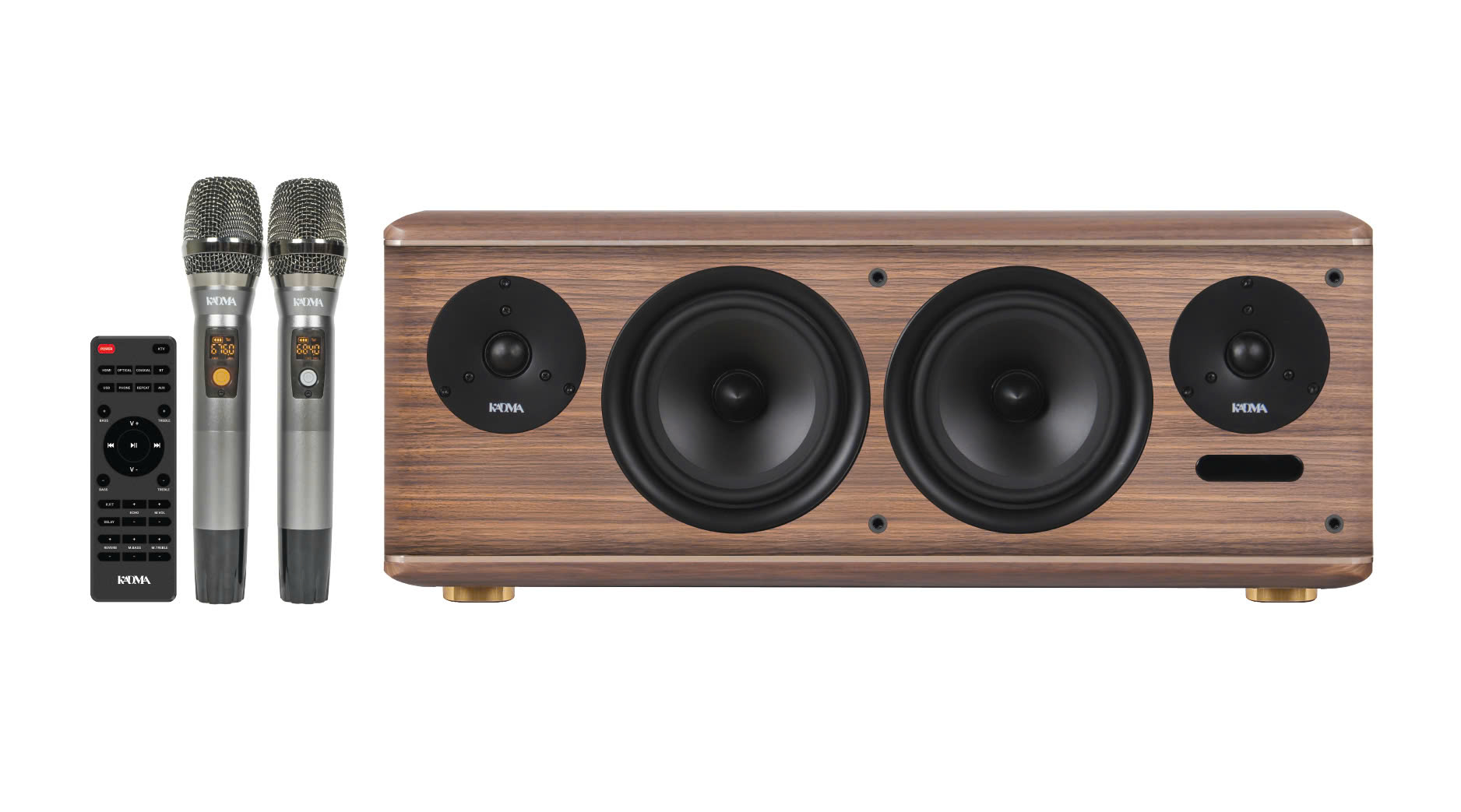 Dàn loa Topshelf Hi-Fi Active 2.0 “All-in-One” được thiết kế tinh tế, sang trọng, đầy tính thẩm mỹ đáp ứng mọi không gian chinh phục mọi trải nghiệm, được thiết kế đặc biệt với dạng loa nằm ngang để bàn, không cần ampli , mixer cùng bộ thu micro rời phức tạp, Dàn loa được tích hợp sẵn mạch khuếch đại mạnh mẽ, tối ưu hóa hiệu suất cùng điều khiển từ xa đa nhiệm để tinh chỉnh hiệu ứng âm thanh chi tiết, sống động với dải tần rộng. Thiết kế sang trọng, tính năng vượt trội và khả năng kết nối đa dạng, KADMA BS63 đáp ứng hoàn hảo nhu cầu nghe nhạc, hát karaoke và xem phim.