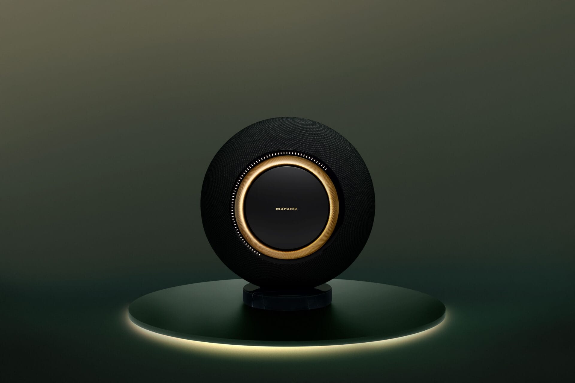 - Marantz AuraControl™ tự động kích hoạt loa khi đến gần, tích hợp đèn LED để điều chỉnh âm lượng.