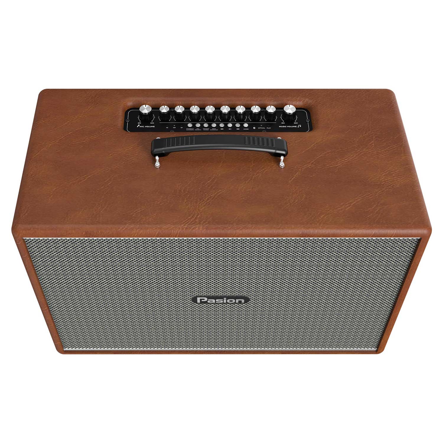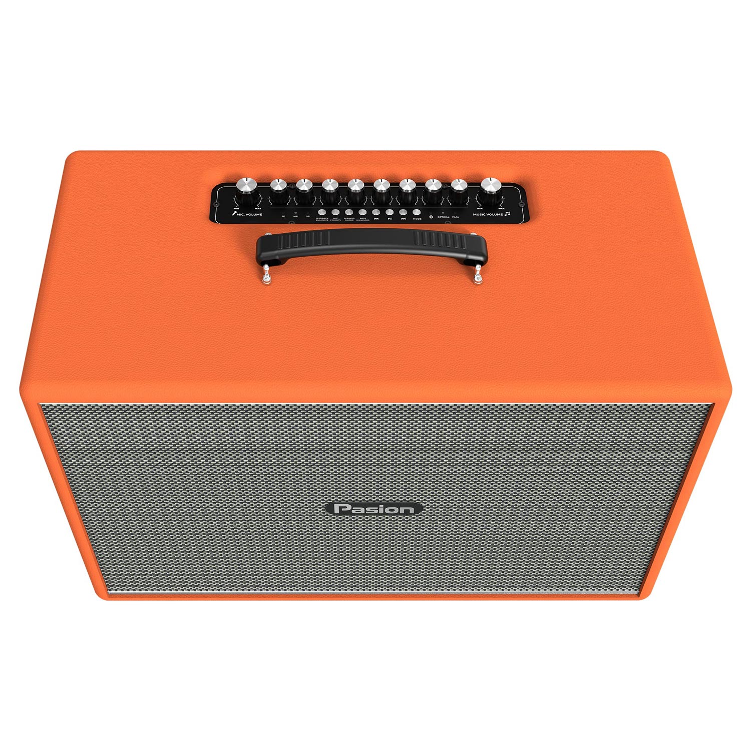 Mặt phía trên của loa Paramax Pasion Mozo là hệ thống bảng điều khiển cho phép người dùng điều chỉnh linh hoạt và hiệu quả theo nhu cầu và sở thích. Các núm điều chỉnh trên loa được thiết kế trực quan và dễ sử dụng, giúp người dùng có thể tinh chỉnh âm thanh theo ý muốn như núm cho to/nhỏ âm lượng, Bass Micro, Treble, chỉnh Effect Echo, Reverb, nút ấn chuyển bài trước/kế tiếp,...