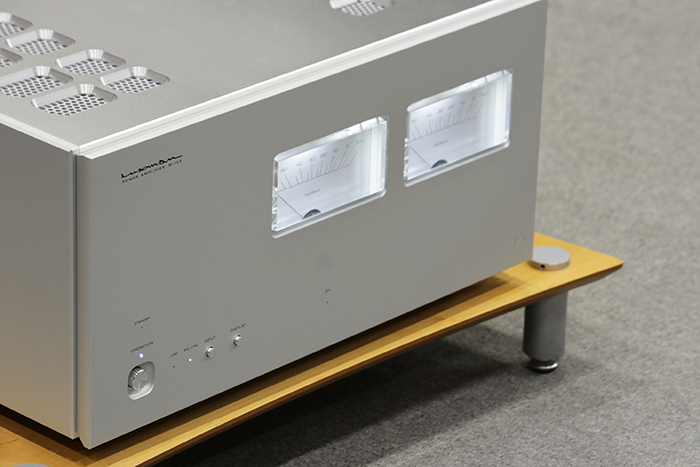 Luxman M-10X được trang bị 2 đồng hồ VU analog dạng kim lớn chất lượng, cho bạn cảm nhận được âm thanh thực sự sống động, di chuyển và được trang bị công tắc riêng để vận hành. Bên cạnh đó, còn có hệ thống chiếu sáng bằng bóng đèn LED phía trên (được cải tiến thành thiết kế tỷ lệ dễ nhìn hơn) đi kèm giúp cặp động hồ này có thể sáng bắt mắt ngay cả trong đêm tối. Cặp đồng hồ VU này đã được thay đổi vị trí để khi sử dụng cấu hình ghép nối cầu mono (dùng hai power amply M-10X), chiếc đồng hồ hoạt động duy nhất sẽ nằm ngay giữa mặt máy