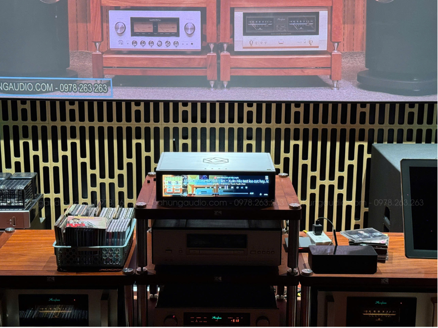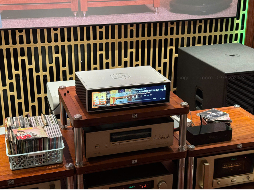Vỏ nhôm nguyên khối, hoàn thiện tinh xảo — đặt trong phòng khách là “nâng hẳn đẳng cấp dàn máy”.